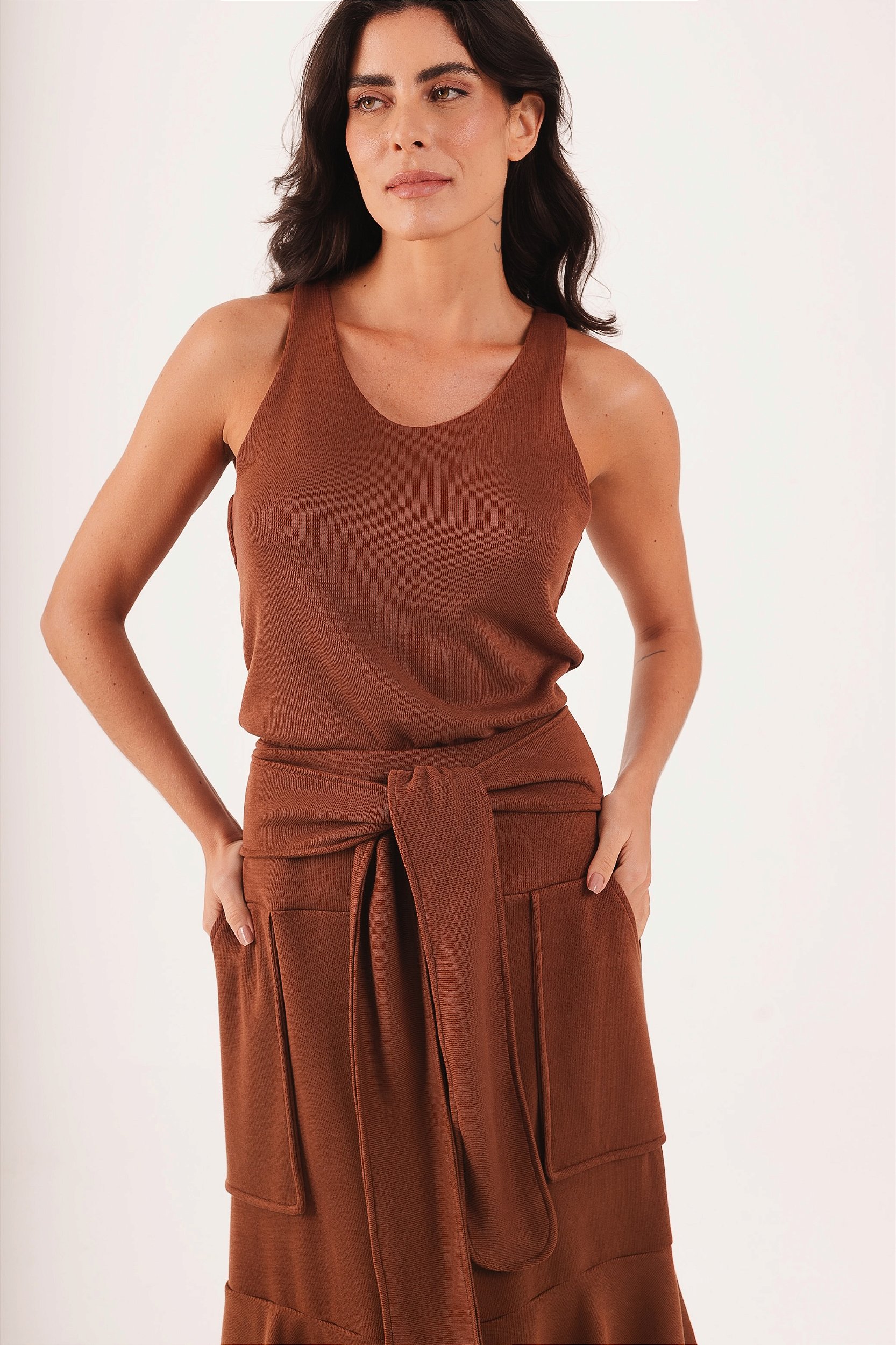 A REGATA NADADORA TRICÔ é fabricada no mesmo tricô da saia laço e você pode comprar junto e fazer um conjunto lindo.